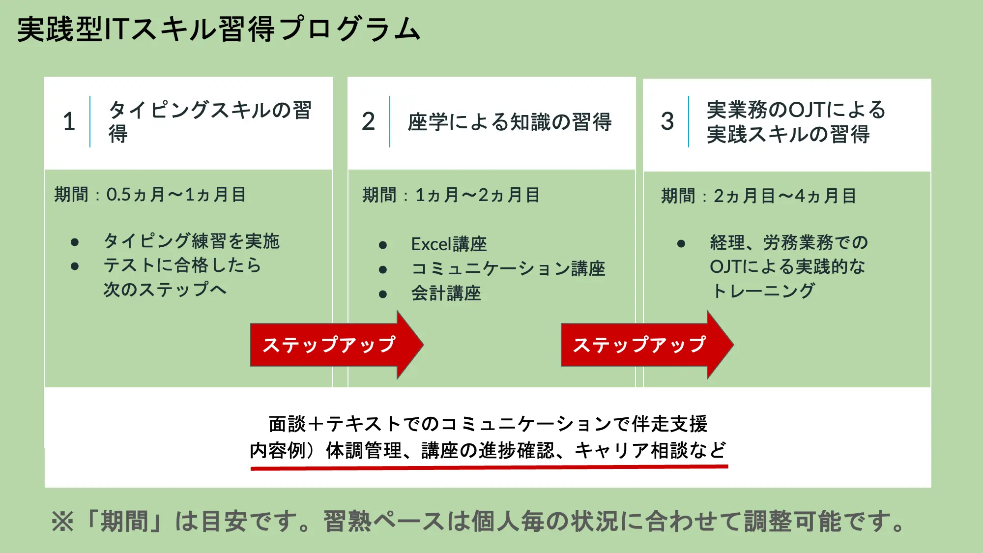 パソコン初心者から事務職に活かせる実践スキルまでを段階的に習得できます